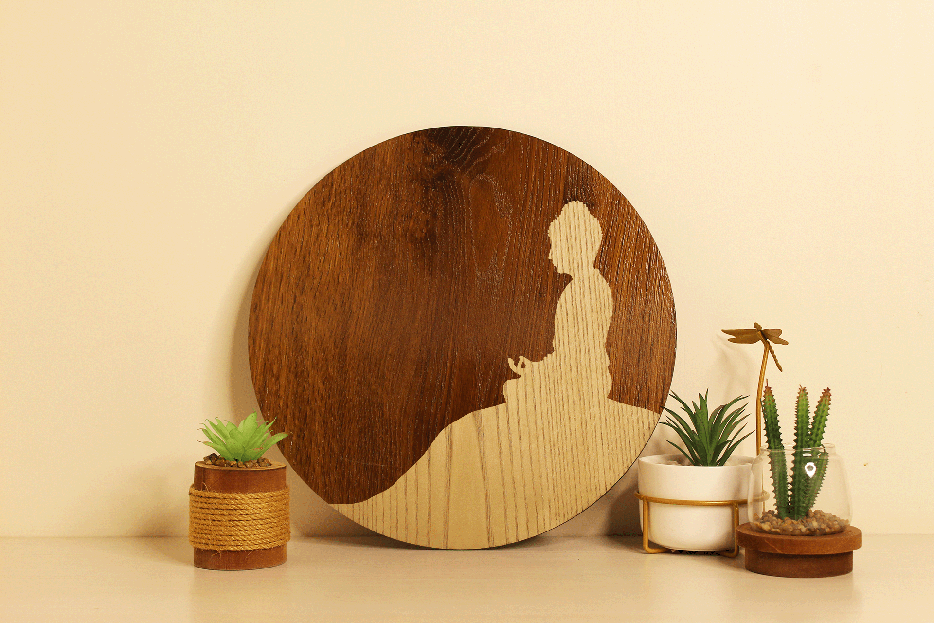 Design: Graceful silhouette of Buddha in meditation, symbolizing peace and mindfulness