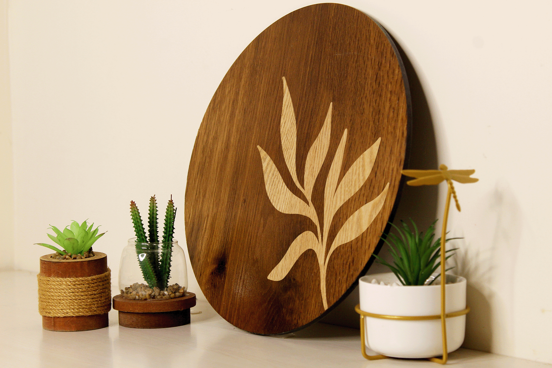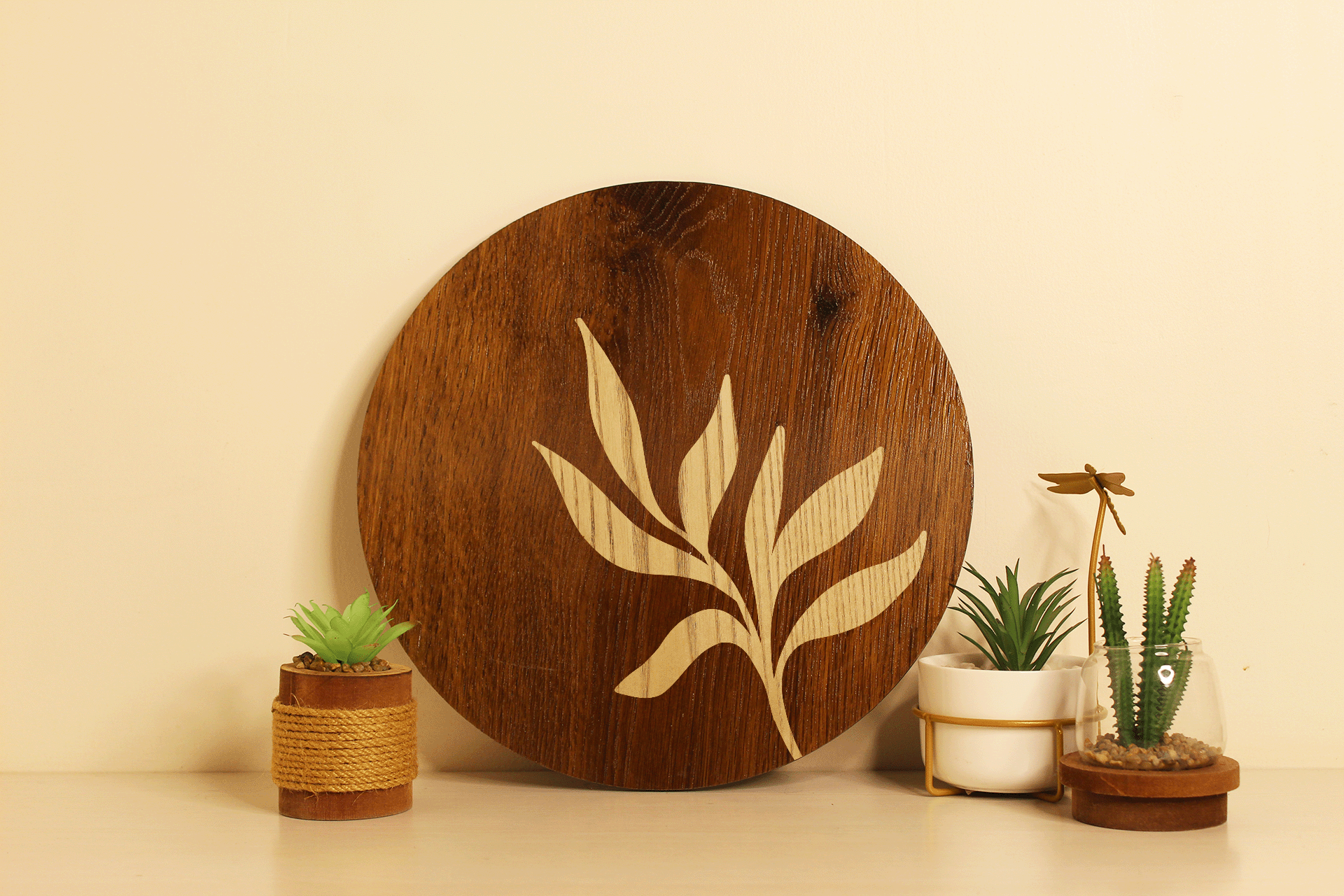 Add an organic touch of nature to your home with this handcrafted circular wooden wall décor.