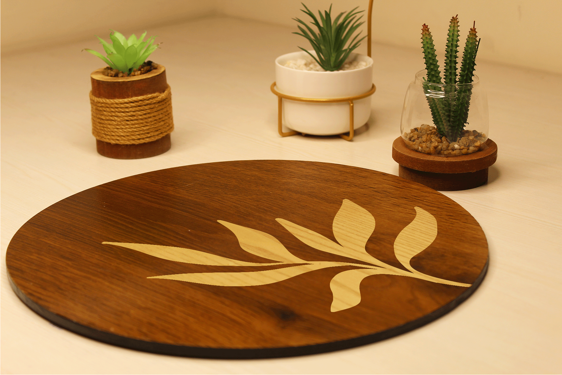 Design: Intricately carved silhouette of Rustic Branch, symbolizing tranquility and inner awakening